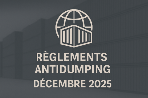 Cet article reprend les mesures de défense commerciale de l’Union Européenne du mois de Décembre 2025.