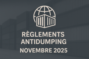 Cet article reprend les mesures de défense commerciale de l’Union Européenne du mois de Novembre 2025.